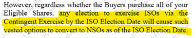 “Gray Zone”: Does the entirety of the ISO grant convert to NSOs (rather than just the vested option shares that were offered as part of a Contingent Exercise)?