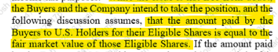 2. US tax law, perhaps because of or despite its complexity, is surprisingly “gray”. As in, there is so much “gray zone” around the tax laws that impact tender offers that each company’s tax and legal team often has their own various interpretation of how to mark the transactions on their books. Which also means that it’s imperative to get clarity from the company on how to interpret these different clauses.